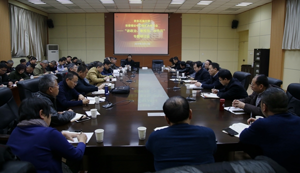 赛云秀书记强调,开展“讲政治、敢担当、改作风”专题教育,是深入学习贯彻习近平总书记关于秦岭北麓西安境内违建别墅问题的重要指示批示精神、夯实管党治党政治责任的重要举措,也是克服形式主义、官僚主义、转变作风、激发担当作为的具体行动。全校党员干部要牢固树立“四个意识”,坚决做到“两个维护”,旗帜鲜明讲政治,持之以恒抓作风,坚决在思想上政治上行动上同以习近平同志为核心的党中央保持高度一致。