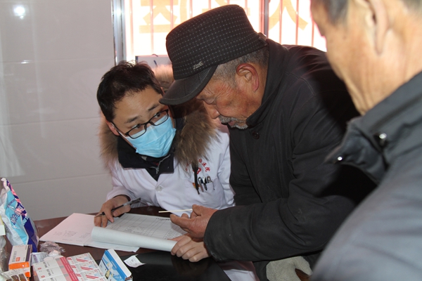 校医院院长崔广志带领的医疗团队对坚固村村民进行了义诊和体检,校工会向每户村民发放了御寒的棉被。