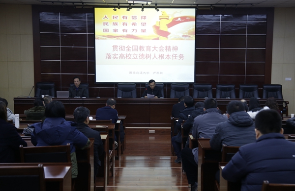 卢黎歌教授以《贯彻全国教育大会精神 落实高校立德树人根本任务》为题,从“充分理解全国教育大会的历史意义”、“认真领会全国教育大会精神”、“结合我省实际重在贯彻落实”三个方面对全国教育大会精神进行了全面宣讲和精细解读。