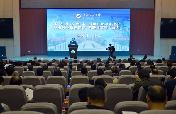 李天太校长作了题为《坚持以本为本,增强专业内涵建设,突出专业特色建设,不断提高育人能力》的报告。他首先从“人才培养体系进一步完善”“专业内涵建设成效显著”“教育教学改革扎实推进”“教学管理更加规范”“生源和人才培养质量不断提高”五个方面,对两年来的本科教学工作进行了回顾。
