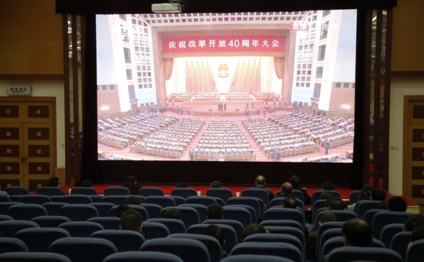 收看庆祝大会现场直播后,大家心潮澎湃,激动之情溢于言表,纷纷表示,要更加坚定地团结在以习近平同志为核心的党中央周围,更加自觉地增强“四个意识”,坚定“四个自信”,继续高举改革开放的伟大旗帜,努力做好自己的工作,走好新时代改革开放的新长征。