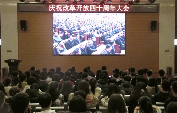 组织师生员工在多个会场集中收看了大会直播。
