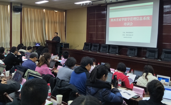雁塔校区第五会议室召开。陕西省教育厅国际合作与交流处副处长郭宏毅主持会议,教育部来华留学管理信息系统培训专家及陕西省招收来华留学生的39所高校的80余名代表参加会议。