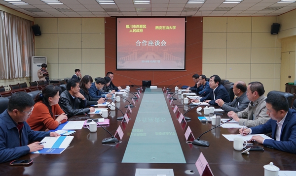 与银川市西夏区人民政府合作座谈会在雁塔校区第一会议室召开。校长李天太、西夏区区长刘虹出席。座谈会由合作发展处处长蔡上游主持。