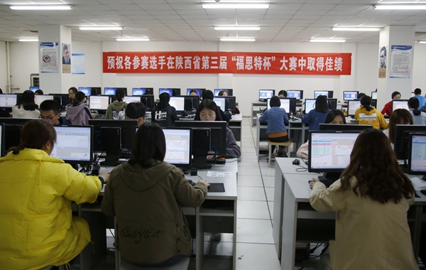 随后,2018年陕西省第三届“福思特杯”大学生会计应用技能竞赛正式拉开帷幕,来自全省50余所高校的600多名师生参加了比赛。每支参赛团队分为四人(一名出纳、两名会计、一名主管)进行会计业务手工处理,在规定时间内完成从建账到纳税申报表编制的所有会计业务流程,对选手的综合业务能力进行全方位考核。赛场上,同学们以饱满的热情积极参赛,他们娴熟的操作、默契的配合充分展现了良好的精神风貌和过硬的专业技能。
