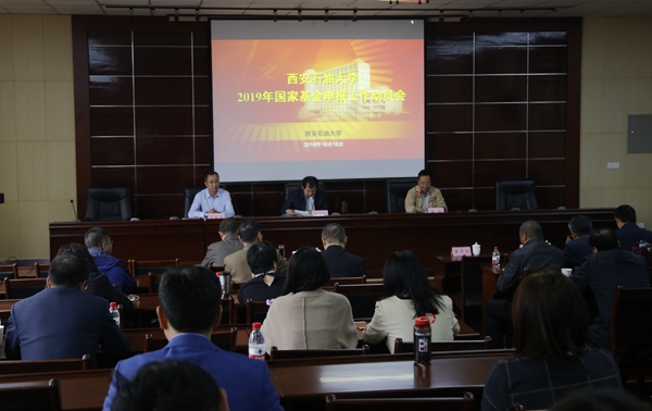 2019年度国家科学基金项目申报动员会在雁塔校区第五会议室召开。李天太校长出席会议。科技处、各院系、省部级以上重点科研基地、校级以上科研团队负责人及教师代表100余人参加了会议。会议由李华副校长主持。