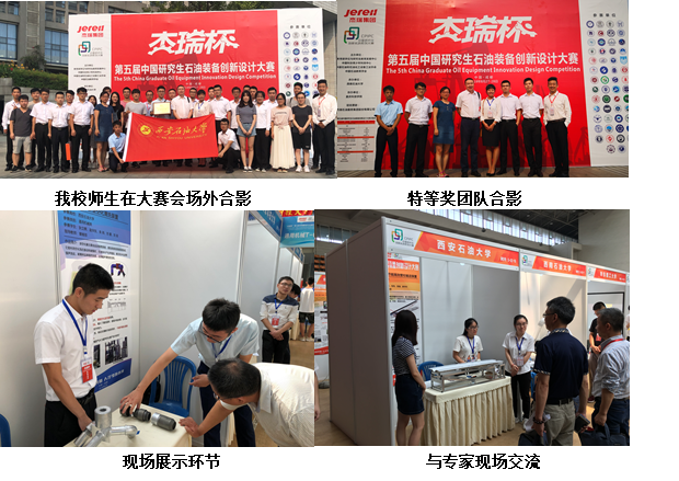 获得“优秀组织单位”奖。其中由郑杰、窦益华老师指导的作品“页岩气开发液压伸缩式连续油管牵引器”(学生团队:刘琼、韦堃、朱礼涛、郝健坤、杨伯客)获得组委会石油装备类的唯一特等奖。此外,依托本届大赛,学生团队还申请发明专利10项、实用新型专利12项。
