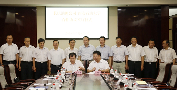 与长庆油田公司自2010年签约战略合作协议以来合作取得的巨大成果。他说,校企双方在科技研究方面开展了近千项合作项目,取得了多项国家科技技术进步奖和省部级科研成果;数百名优秀人才被长庆油田公司选聘;大学生实践基地、研究生培养基地的共建,也标志着校企双方达到了互助共赢的目的。他希望在以下三个方面继续开展深度合作:一是共建实验室,双方要集中优势资源共建,积极申报国家级、省部级重点实验室。二是科研合作,双方要针对长庆油田“三低”难题开展重点攻关。三是人才培养,要聘请长庆油田公司的技术专家担任兼职导师,为国家能源经济建设培养更多的复合型工程应用人才。