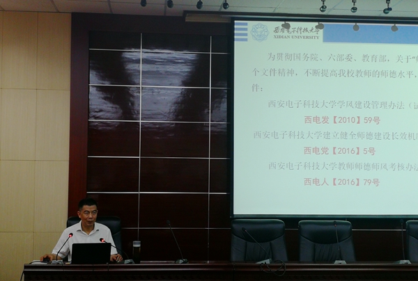 陕西省师德标兵、西安电子科技大学千博教授作了题为《新时代下高校教师师德培养》的讲座。他讲到,新时代下师德的内涵应包含:第一是爱心,热爱是最好的老师,爱学生才有对学生的关心;第二是事业心,把教书育人作为事业终身追求,严格自律,不断摸索提升,才有上进心;第三是责任心,时刻牢记自己的责任,对学生、对德州扑克