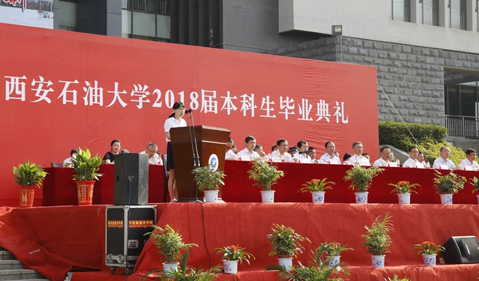 2018届本科生毕业典礼在鄠邑校区图书馆南广场举行。校党政领导赛云秀、李天太、李延平、张木、雷西合、杨战社、陈军斌、李华、苏文甫,特邀嘉宾、原校长屈展出席典礼。相关职能部门、各院(系)负责人,教师代表、校友代表,2018届毕业生及家长3000余人参加典礼。典礼由校党委副书记张木主持。