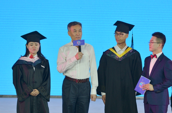 校长屈展携毕业生代表参加活动,并为毕业生送上寄语。学生工作部负责人陪同参加。