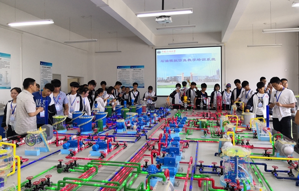 在工程训练中心,同学们先后参观了石油石化认知园、油气分布沙盘、采油集输实训室、地质科普陈列室、3D打印室、数控室车间、铣刨磨铸车间、钻井平台。通过老师们生动形象的讲解,同学们感受到了石油科技的魅力。