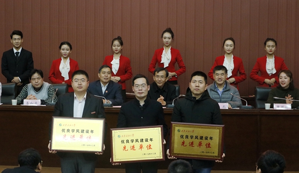 2017年学风建设总结表彰大会在鄠邑校区弘石学术报告厅召开。校党委副书记张木出席大会。学生工作部、团委、教务处、鄠邑校区管理办公室负责人,各院(系)主管学生工作负责人,全体学生工作干部,学生代表共400余人参加了大会。