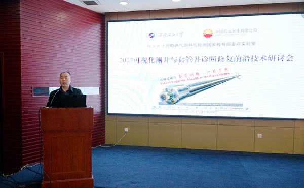 严正国、北方斯伦贝谢油田技术(西安)有限公司袁文豪、西安威盛电子股份有限公司樊国会分别作了《套管可视化诊断技术》、《燃气动力套管补贴加固技术研制及应用》和《套损与套漏检测技术》的报告。全国各石油企业的专家就报告内容和可视化测井与套损井诊断修复前沿技术进行了热烈研讨。