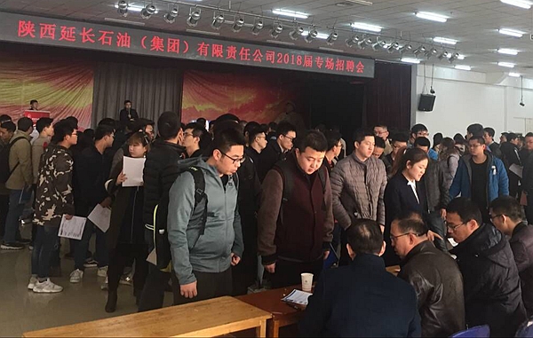 12月6日上午,陕西延长石油(集团)有限责任公司专场招聘会在鄠邑校区腾辉大学生活动中心举行。延长石油(集团)有限责任公司下属15家单位、30余名招聘代表来校选聘毕业生。全校相关专业近1000名毕业生参加应聘。
