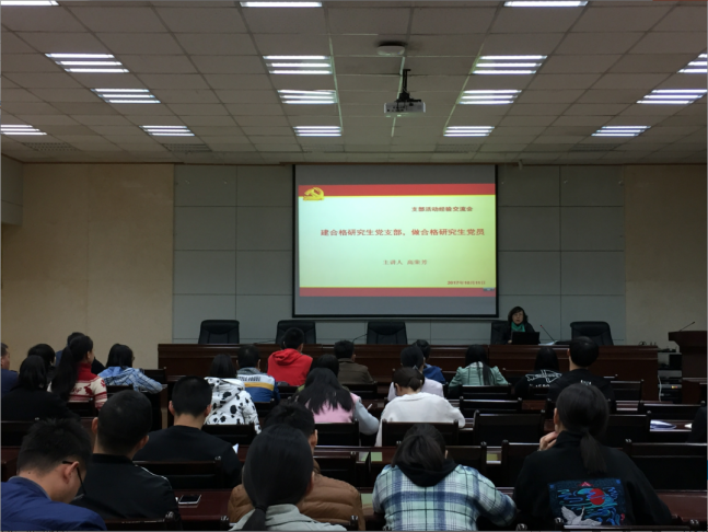 ——召开党支部工作经验交流会。10月11日下午,“喜迎党的十九大,建合格党支部,做合格党员”研究生党支部工作经验交流会在雁塔校区会议中心第三会议室举行。研究生院党委书记高荣芳、党委副书记范琦,全体辅导员及全院55个研究生党支部干部、党员骨干60余人参加会议。会上,5个研究生党支部代表就如何拟定党支部创新工作案例、如何上好党课作了经验交流。研究生院党委书记高荣芳作了专题党课讲授,范琦副书记作了具体工作安排。会议同时就如何建设合格党支部,做合格党员进行了交流研讨。