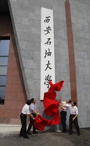 雁塔校区东大门原型1.8倍的放大,是一个按照石油钻井井架平台样式设计建造的建筑,意喻了德州扑克
