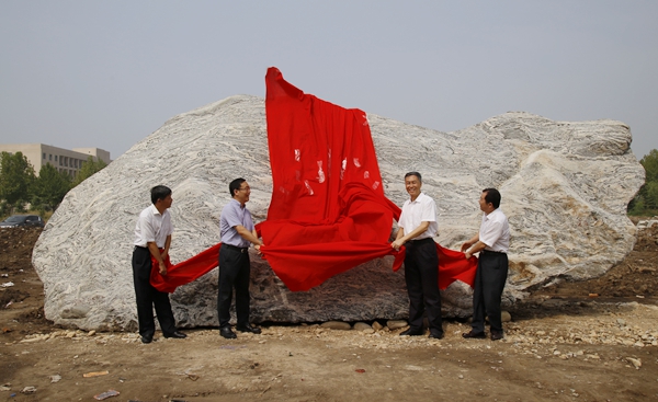 其次,蕴含着深刻的文化意义。这个东大门建筑造型不只是象征着一个石油钻井井架平台,我们还专门选用了沉积岩的青石做为主外立面,寓意着石油天然气蕴藏其中,更成为具有鲜明石油特色的标志性建筑,独一无二。东大门内我们专门安放了一块8米多宽、3米多高的照壁石,质地、色彩、纹路、走势、造型都很美,彰显了大自然的力量,犹如一幅大写意的山水画,大气磅礴、大浪淘沙。它的形状犹如一只卧兽,面北昂首向上,处在养精蓄锐、积蓄力量、蓄势待发的状态,寓意着大学是人才培养之地,卧虎藏龙,厚积薄发,有朝一日将会一跃而起、一飞冲天、一鸣惊人。这道大门的里边是神圣的学术殿堂,期冀着这个照壁石能将社会的浮躁和喧哗挡在外面,将潜心知识追求的宁静留在校内,将江湖气、商贾气挡在外面,让书卷气、浩然正气在校内弘扬。