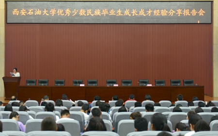 5名2017届优秀少数民族毕业生就大学四年的学习生活经历及感悟向大家作了分享发言。他们讲述了自己入校以来的奋斗历程和所取得的成绩,展现出积极进取、奋发向上的青春形象。他们不畏艰难、刻苦学习、团结同学、热爱母校的精神风貌深深感染了广大同学,所作的发言鼓舞人心、催人奋进,现场不时响起阵阵掌声。参加报告会的同学们纷纷表示,5位同学的成长经历给予了自己较大的启发,在接下来的大学生活中,要以他们为榜样,不断进取努力。