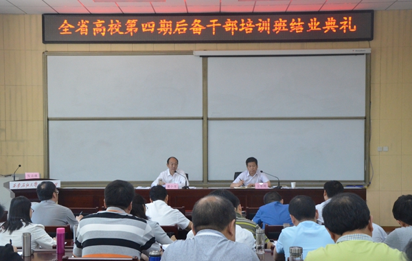 举行。省委高教工委书记董小龙出席结业典礼并讲话。省委高教工委组织部部长王军周主持。来自全省38所高校的45名后备干部学员参加了结业典礼。