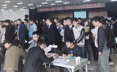 3月8日上午,陕西延长石油(集团)有限责任公司专场招聘会在腾辉大学生活动中心举行。陕西延长石油(集团)有限责任公司下属的12家单位、20余名招聘代表来校选聘毕业生。全校相关专业2000余名毕业生有序参会。