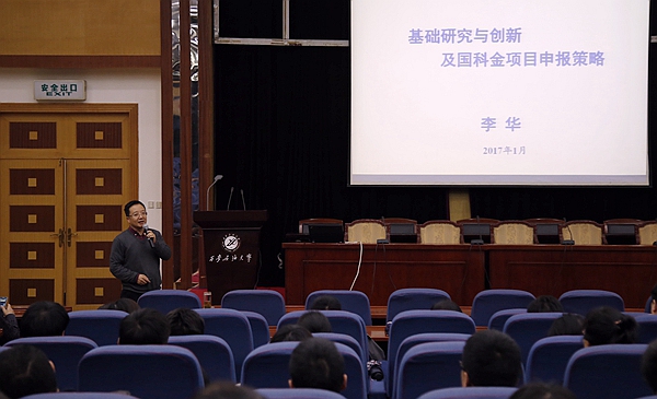 李华副校长为大家作了题为《基础研究与创新及国家科学基金申报策略》的专题报告。他结合自己的科研经历和担任自然科学基金项目评审专家的经验,耐心细致地讲解了国家科学基金项目的类型、资助情况、申请书撰写技巧、专家评议标准,以及2017年度国家基金委工作部署情况等,强调在基金申报时要聚焦基础和学科前沿问题,扎实认真地做好具体工作。他鼓励广大教师在申报国家科学基金的过程中,要树立信心,坚持不懈,克服畏难心理,深入挖掘自身潜力,提升申报质量;要针对重点学科和领域集中申报,力争在2017年度国家科学基金申报中取得佳绩。李华副校长的报告内容丰富、生动精彩,报告结束后他还解答了大家提出的各种问题。