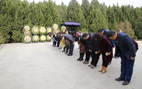 民主党派成员向陵墓及雕像鞠躬致敬