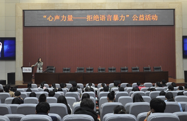 11月17日晚,由陕西广播电视台896汽车调频《长安夜话》节目发起,团省委青少年权益维护中心、陕西省律师协会共同支持的“心声力量——拒绝语言暴力”公益活动在德州扑克