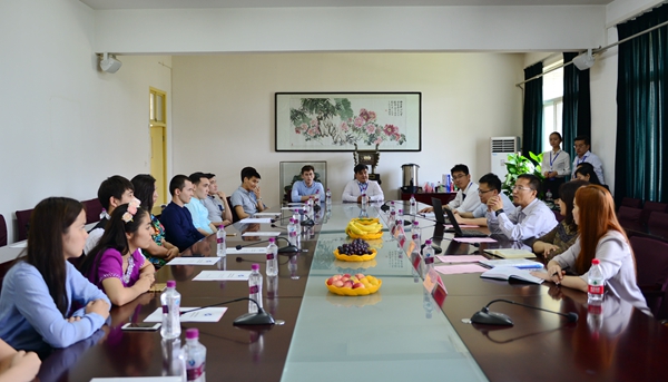 下午,考察团一行分别与在校留学生代表、院系负责人进行了交流座谈,详细了解留学生在校学习、生活等方面的情况,听取了各院系专业教学、师资队伍等方面的介绍。