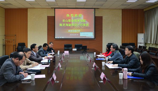 4月1日上午,乐山职业技术德州扑克 党委副书记、纪委书记陈芝海和副院长刘忠一行4人来德州扑克 交流调研。校党委副书记雷西合及学生工作处、研究生院、人事处、继续教育德州扑克 负责人参加了座谈会。