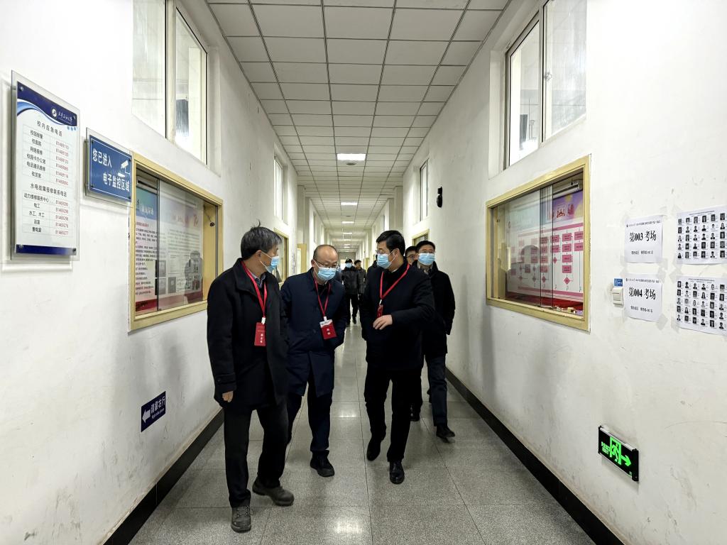 12月23日,校长王进富、副校长杨战社在考试现场调度组考工作,实地查看考生入场秩序、考务组织等情况,认真检查了各考场情况、监考教师履职、考生纪律等。检查过程中,看望慰问了考务人员、属地公安和医疗保障力量、学生志愿者,对大家的辛勤付出表示感谢。