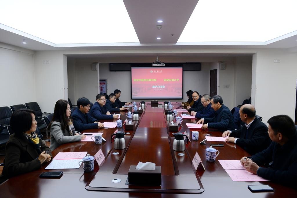 1月2日下午,雁塔区教育局党委书记、局长樊铭瑞一行来校访问交流。交流座谈会在明德校区(培训中心)北楼第一会议室召开。校党委书记常江出席会议,座谈会由校党委副书记张木主持。