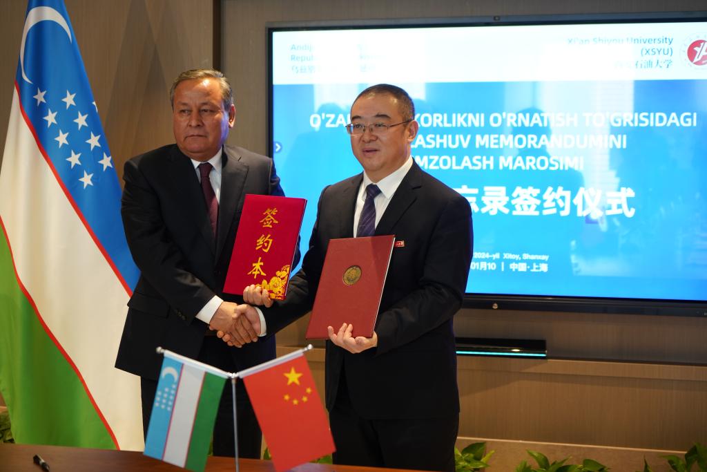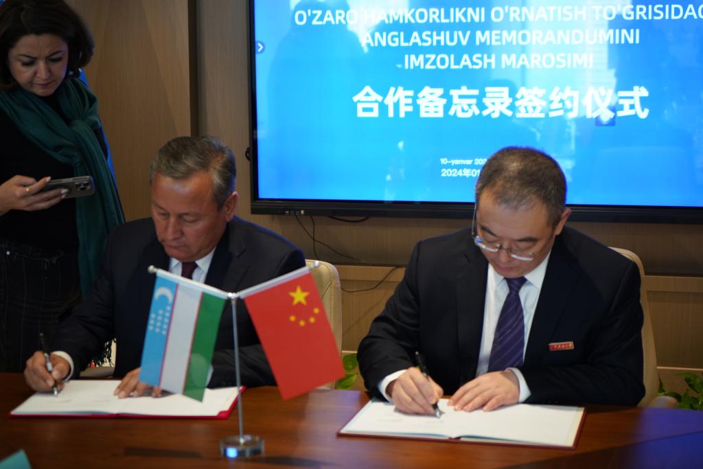 座谈会上,双方围绕中乌合作办学、乌国学生来华留学等合作意向进行了深入探讨。会谈后,常江与阿卜杜拉赫马诺夫分别代表双方签署合作备忘录。双方商定将尽快成立联合工作组,协商框架内合作办学方案的制定与实施工作。