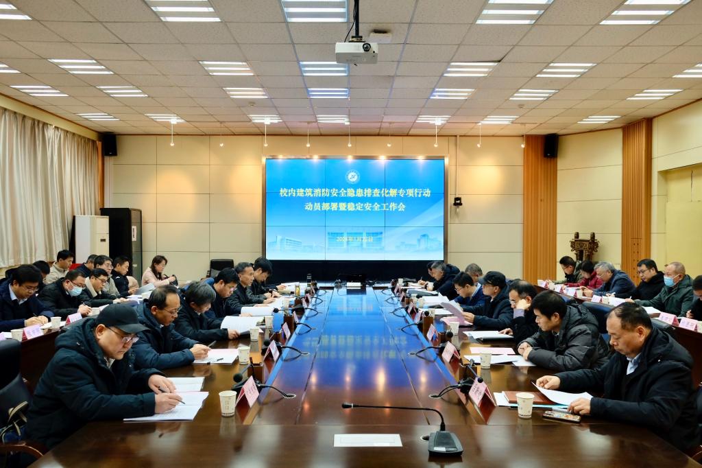 在雁塔校区会议中心第二会议室召开了校内建筑消防安全隐患排查化解专项行动动员部署暨稳定安全工作会。校长王进富,副校长杨战社、苏文甫、张君涛、张骁勇出席会议,相关职能部门负责人和机关党委书记、各院系党组织书记或院长(主任)参加了会议。会议由校党委副书记张木主持。