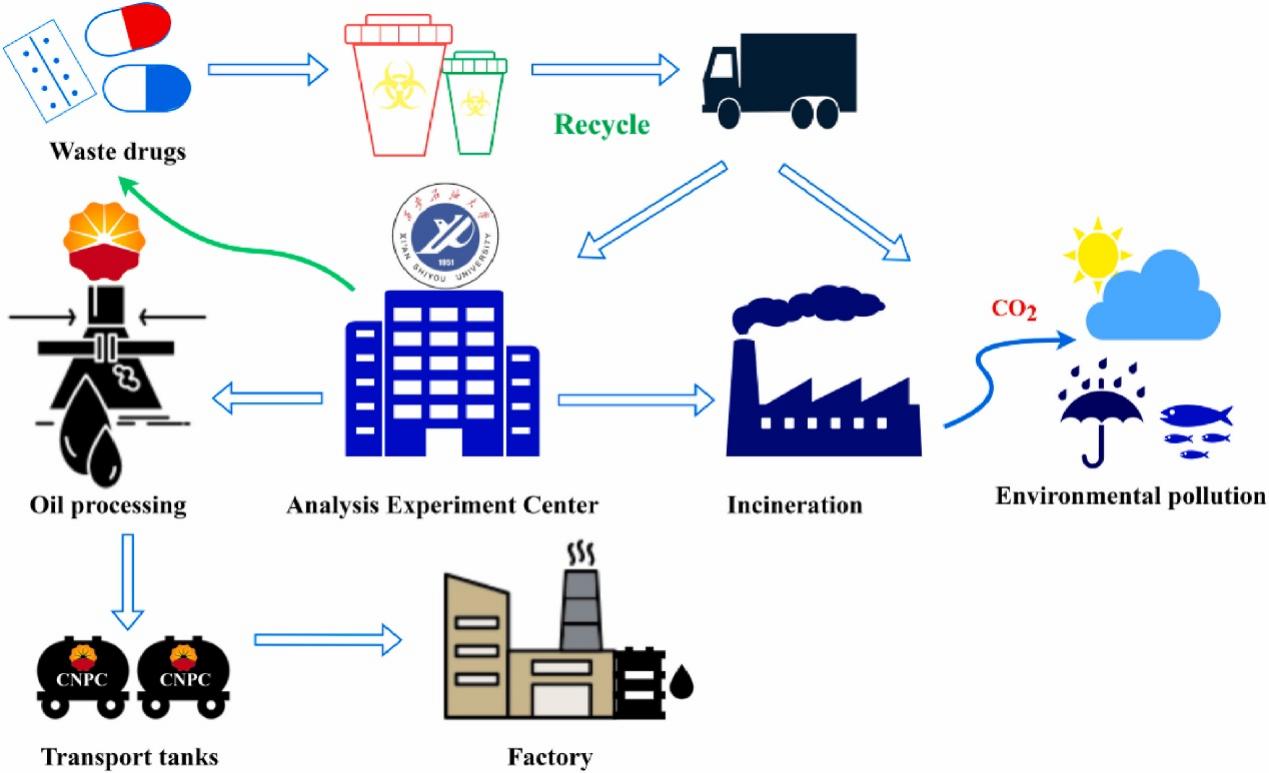 过期药品的回收和无害化处理成本高,并且基本未进行资源化利用。各国的回收方式各不相同,甚至一些欠发达国家也没有建立药品回收系统。因此,为了最大化实现废弃药物利用价值,研究团队基于对原油流动改进剂结构的理解和废弃物资源化利用的概念,以黄体酮类药物作为原油流动改进剂为例进行研究。