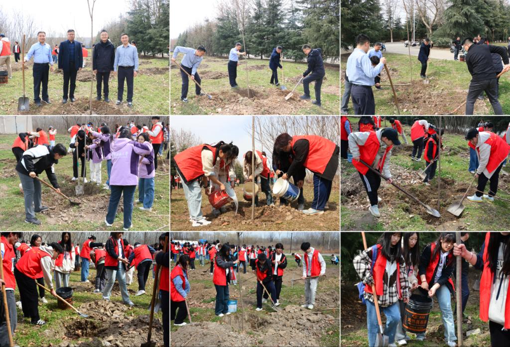 2024年义务植树活动在鄠邑校区举行,副校长张骁勇出席活动。校团委、后勤处、校医院负责人和200余名师生代表参加了活动。