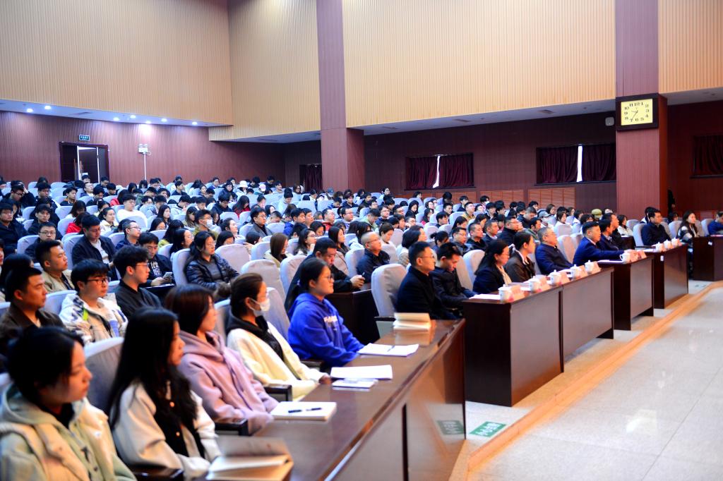 学生工作部、教师工作部、校团委、教务处、科技处等相关部门负责人,各院(系)主管学生工作负责人、全体辅导员和学生代表共400余人聆听报告。