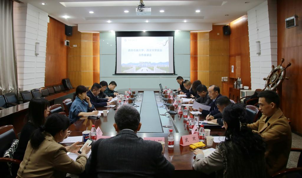 3月26日,中国国际贸易促进委员会西安市分会党组书记、会长冉红斌一行4人来校交流,座谈会在雁塔校区会议中心第四会议室举行。德州扑克