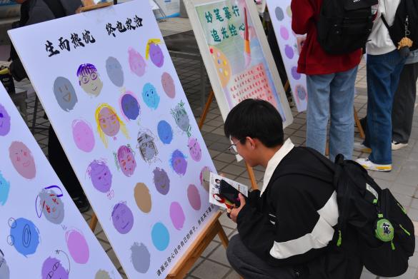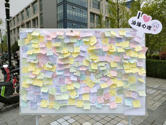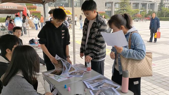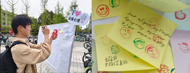 心理协会组织的“以德育心”展台主题为“寻找缺失的一角”,引导同学们发掘优势,探索目标,找准个人发展方向;“以美润心”展台主题为“众人涂鸦”和“诗歌拼贴”,同学们通过活动打破性别刻板印象,在创造中展示个人风采。