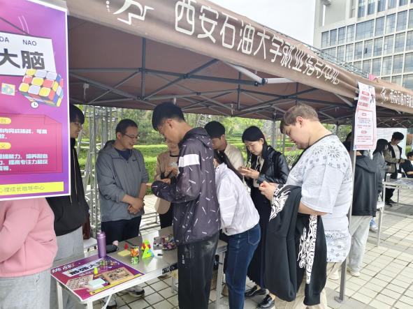 学生心理成长指导中心组织的“以智慧心”展台主题为“心理健康知识知多少”和“挑战最强大脑”,在游戏中为同学们普及心理健康知识,探索个人潜能,挑战大脑极限。
