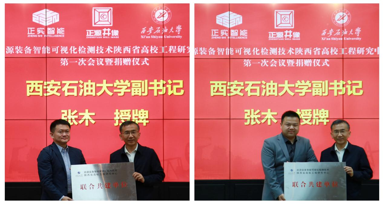 会议还举行了共建单位的捐赠仪式,西安正源井像公司、西安正实智能公司为中心捐赠硬件设备和软件,市场预估值900万元。张木为共建单位授牌,并签订捐赠协议。