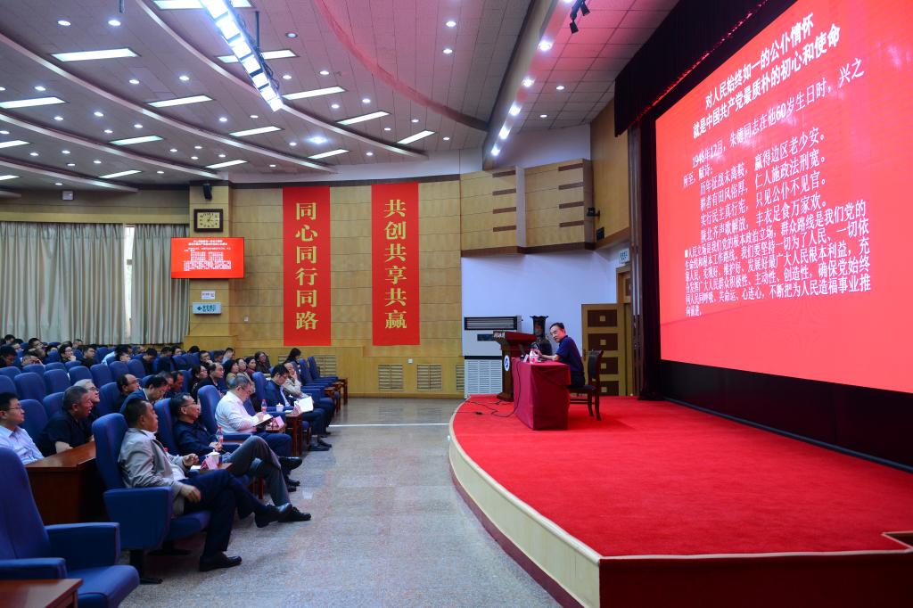 师生作党史学习教育暨处科级干部培训专题辅导报告。报告会由校党委书记常江主持,校领导,校党委委员,校党委理论学习中心组成员,各院(系)级单位党组织书记,全体处级科级干部,思政课教师代表,党支部书记代表,师生代表近300人听取了报告。