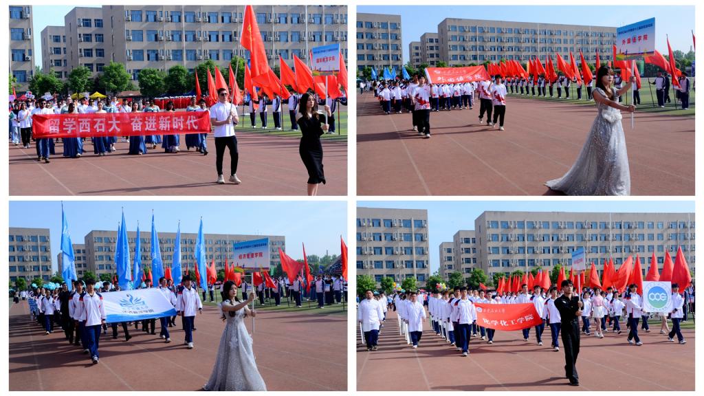 上午8点30分,伴随着《运动员进行曲》的旋律,国旗、校旗、会旗方队,裁判员方队和16支院(系)参赛代表队组成的方阵,以精彩创意的队列方式依次入场,有序通过主席台接受检阅,赢得全场观众热烈的掌声和欢呼声。入场仪式上,全体师生精神抖擞、朝气昂扬,嘹亮的口号、矫健的步伐,彰显了西石大人积极向上、拼搏进取的精神面貌以及勇担新时代责任和使命的拳拳决心。口号声、欢呼声响彻运动场的上空。