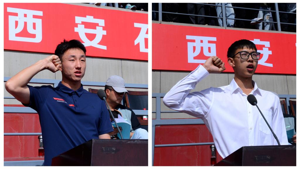 教师崔曜川、学生代表刘思宇分别代表裁判员和运动员宣誓。