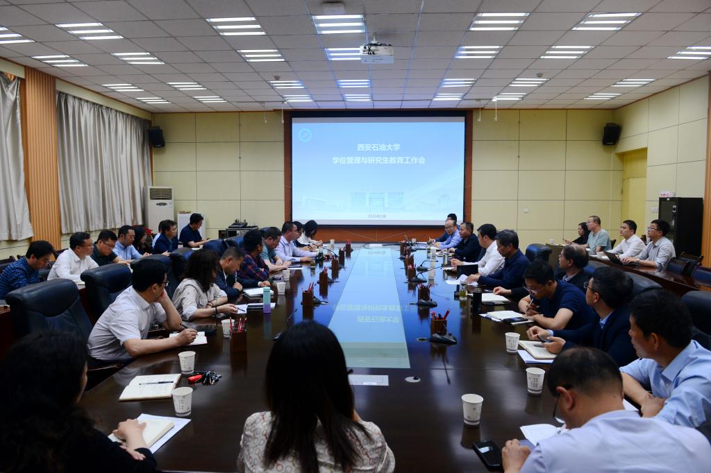 在雁塔校区会议中心第一会议室召开学位管理与研究生教育工作会,校长王进富出席,会议由副校长杨战社主持。
