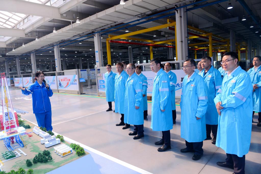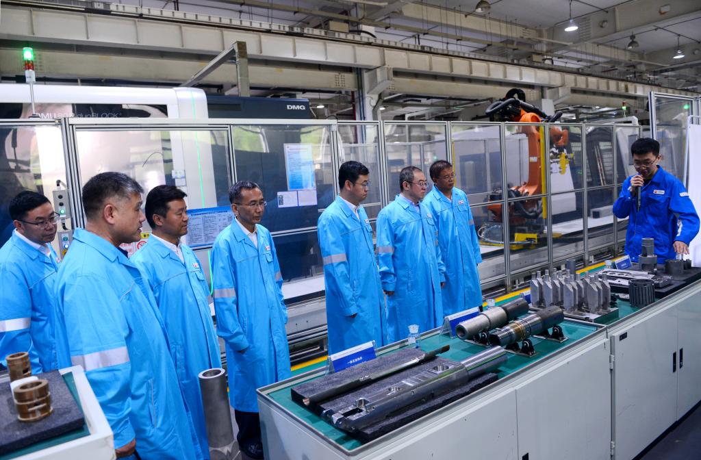 常江、王进富一行在中国石油集团测井有限公司执行董事、党委书记金明权陪同下,参观了公司成套装备产业化工房、智能制造车间,听取公司关键技术产品发展历程、应用情况等方面的介绍,现场观摩了智能制造车间实际运转情况。在园区,金明权向常江、王进富等介绍了超深穿透射孔器穿孔性能,常江、王进富就关心的问题与金明权不时驻足交流。
