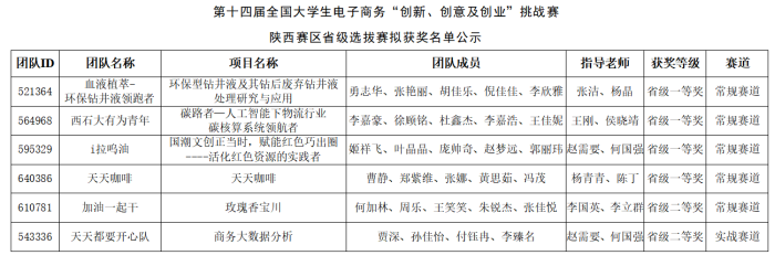 全国大学生电子商务“创新、创意及创业”挑战赛(以下简称“三创赛”)是2009年由教育部委托教育部高校电子商务类专业教学指导委员会主办的全国性在校大学生学科性竞赛,在中国高等教育学会发布的全国普通高校大学生竞赛排行榜的57项赛事中排名第13位。第十四届“三创赛”陕西赛区省级选拔赛报名队伍共计3739支,共有320支团队晋级省赛选拔赛。