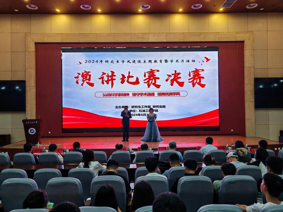 承办的研究生学风建设主题教育暨学术月活动之“弘扬科学家精神恪守学术道德培育优良学风”主题演讲比赛决赛在鄠邑校区弘石学术报告厅举办。校党委副书记张木出席并讲话。研究生工作部、研究生院,以及石油工程德州扑克