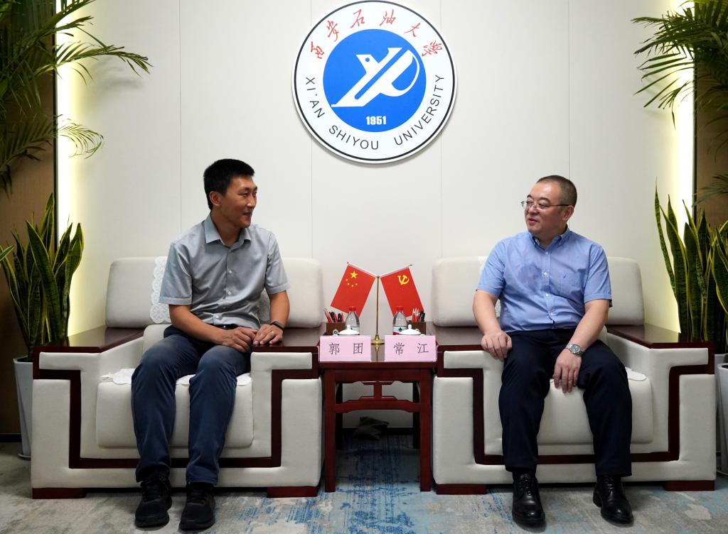 97级校友郭团研究员,并为其颁发兼职教授聘书。校长王进富在东方石油楼与郭团及其导师乔学光教授进行深入地交流,并就学术研究、人才培养等方面的问题交换了意见。校党委副书记张木分别参加了上述交流活动。