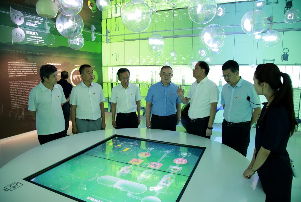 在延长石油展示中心,大家分别参观了“序厅-能量之源”“历史文化厅-溯源之旅”“产业技术厅-探源之行”“尾厅-源梦未来”四个部分。全面了解延长石油的发展历程、巨大贡献、转型升级、绿色低碳、变革创新等内容。在历史文化厅、产业技术厅主要参观学习了中国民族石油工业早期发展、延长石油百年红色发展历程和高质量发展业绩以及延长石油在油气勘探开发、煤电一体化、高端能源化工、清洁能源供应等方面的产业实践,取得的新技术、新突破和新成就。大家充分感受到延长石油人弘扬埋头苦干、不怕困难的优良作风,艰苦奋斗、担当奉献的创业历程。